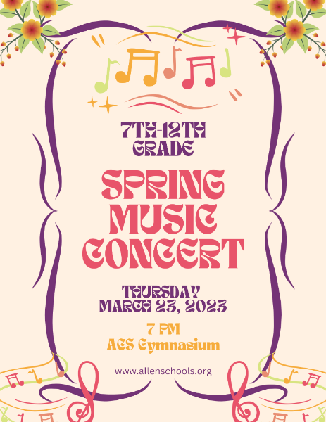 Join us for the 7th-12th Grade Spring Band & Choir Concert on Thursday March 23, 2023.
