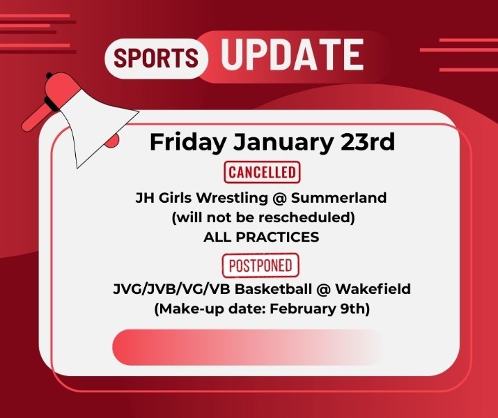 JVG/JVB/VG/VB Basketball @ Wakefield (make-up date has been confirmed for Monday, February 9th)