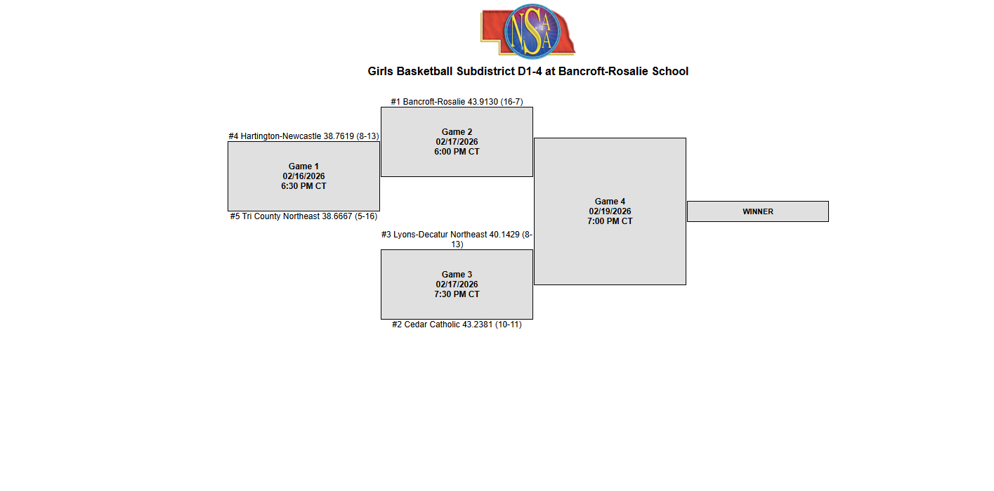 2026 Girls D-1 Subdistrict Basketball Bracket