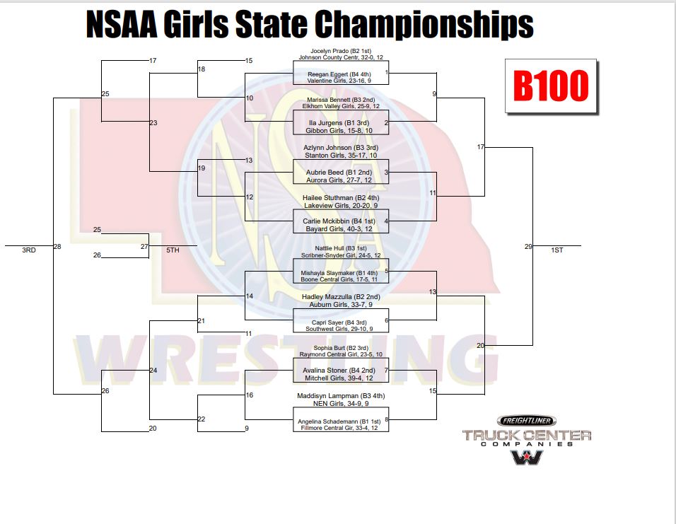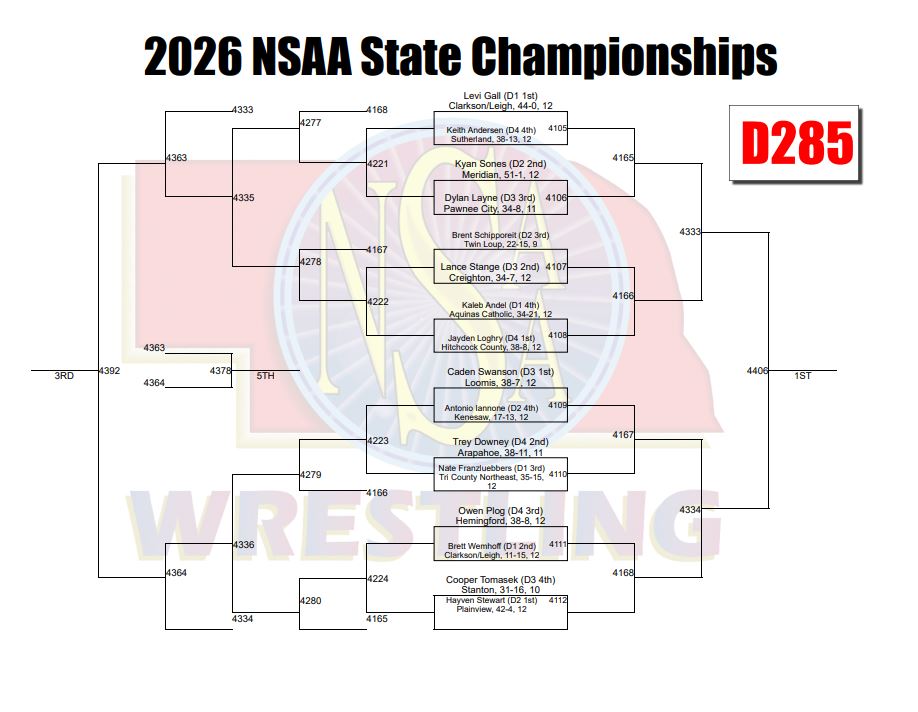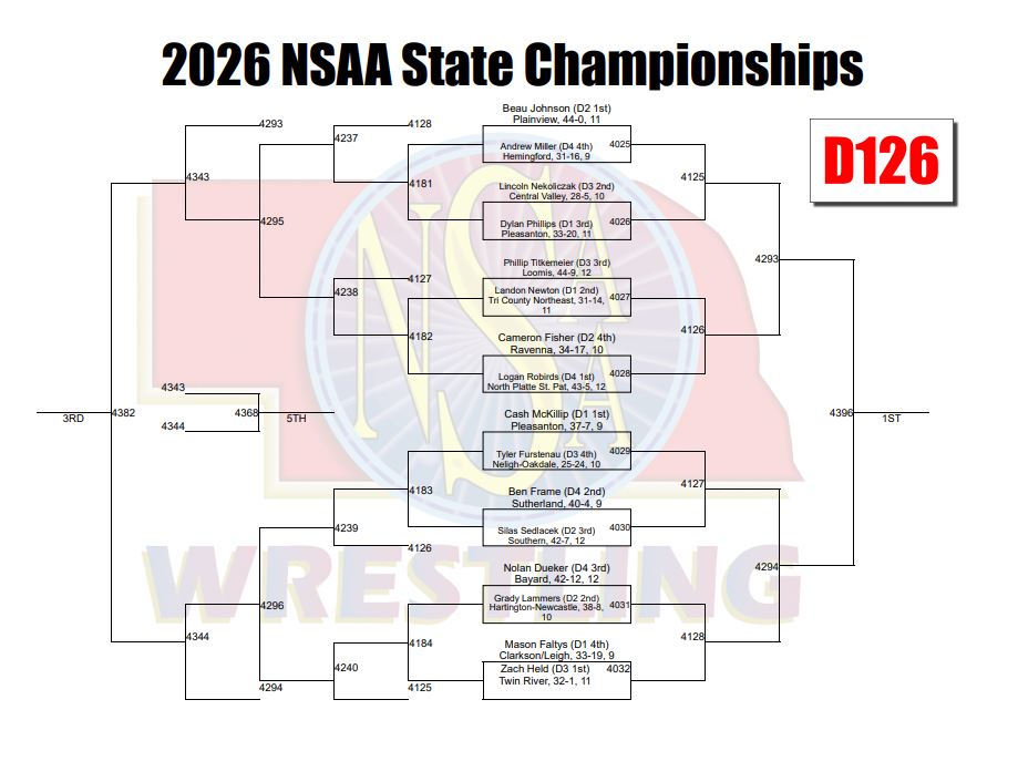 The 2026 Nebraska State Wrestling Championships take place this week, February 17-21. The girls will begin at 3:00 p.m. on Tuesday, February 17th with finals happening at 6 :00 p.m. on Wednesday, February 18th. Click here to see the girls wrestling championship schedule. Jenni Olson will be wrestling in the Class B100 lb bracket and Kiya Tornez will be wrestling in the Class B155 lb bracket.