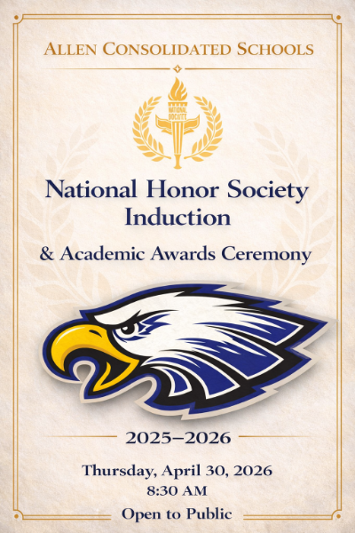 The National Honor Society Induction and Academic Awards Ceremony will be held on Thursday, April 30th at 8:30 a.m. All are invited to attend.